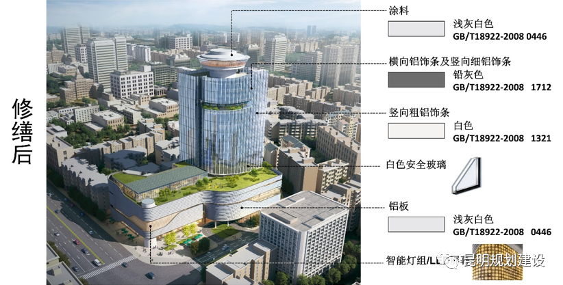 昆明市自然资源和规划局6月8日发布鼓楼大厦外立面修缮方案的批前公示。此次修缮,鼓楼大厦的原轮廓、原层数、原高度将保持不变,除了对建筑进行加固处理外,鼓楼大厦的外立面将由大面积的玻璃幕墙组成,并搭配有LED屏幕,修缮后整体建筑风格偏明亮。